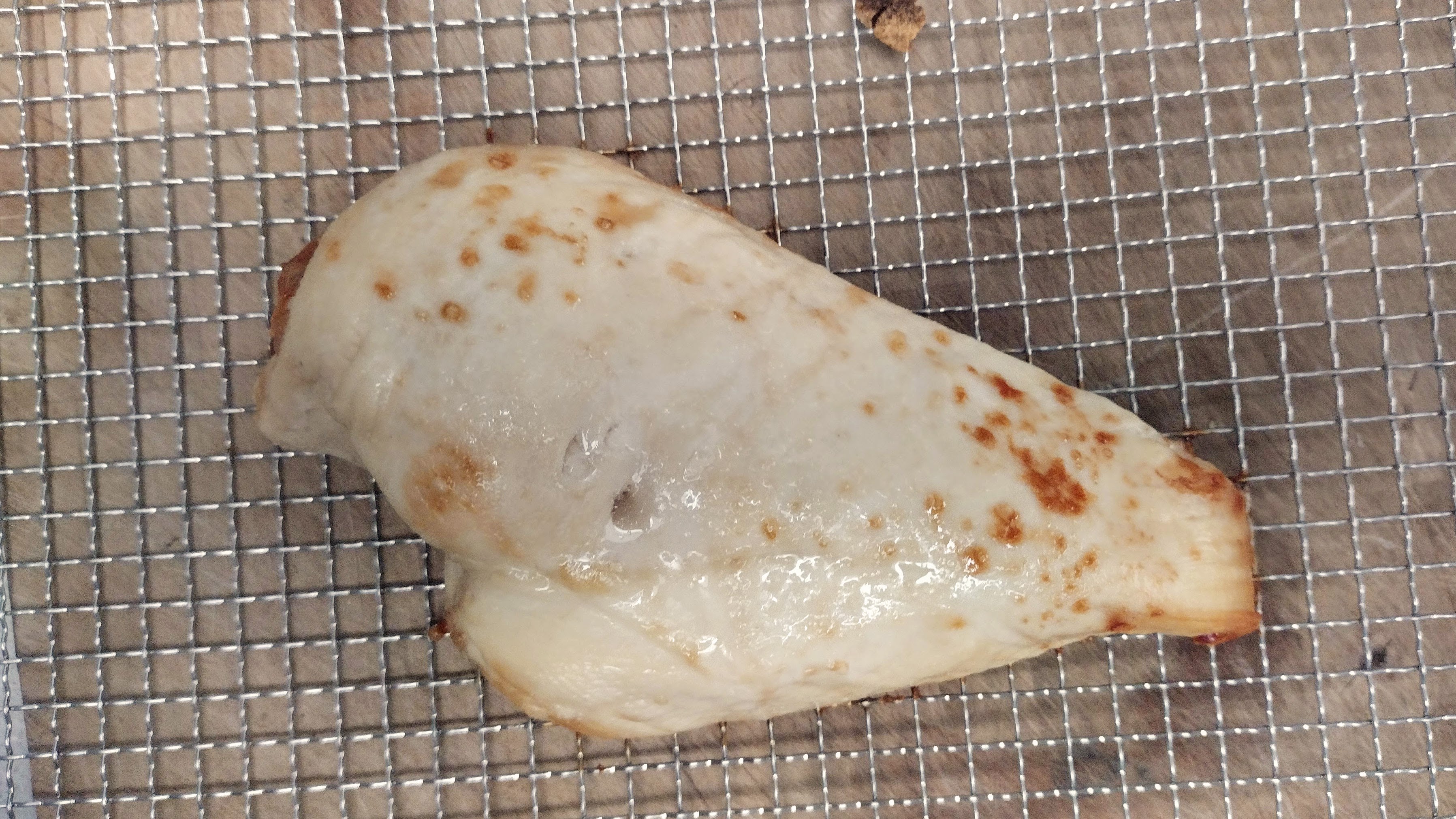 The chicken came out perfectly cooked, with the juices running clear and an internal temperature of 165 degrees Fahrenheit when tested with a food thermometer. It was a little dry at the edges, where I had overcooked it slightly, but the rest of the meat was moist and succulent.