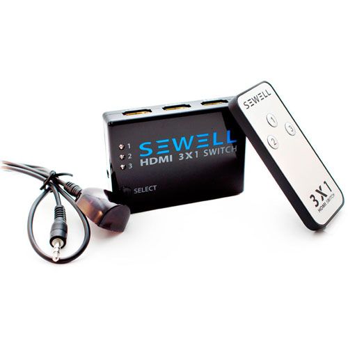 The Sewell SW-28818 alleviates HDMI port congestion by giving you three more ports for all of your HD devices. All you need is an HDMI cable to plug the SW-28818 into your TV. This isn't the best HDMI switcher on the market, but it can pass a 1080p signal and comes with an external infrared (IR) sensor. It doesn't support 3D video, and it relies on power provided by HDMI ports, which can be problematic.