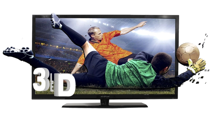 Now let's bring it to the third dimension. Many high-end LED TVs feature 3D compatibility. When we say 3D, we are not talking about the old-school red and green glasses either. The technology has really advanced and not only can you enjoy a 3D movie on the big screen in a theater, but you can take that experience home with you. There are two types of 3D: active and passive. Active 3D uses battery-operated glasses that shutter the left lens or right lens of your glasses open and closed. These glasses tend to be a little bulkier and more expensive than the other 3D option, passive. Passive 3D uses polarized glasses, much like the ones in theaters, to separate the lines to create a 3D look. Whichever option you choose, you can enjoy 3D Blu-rays or 3D television on a nice LED screen in your living room.